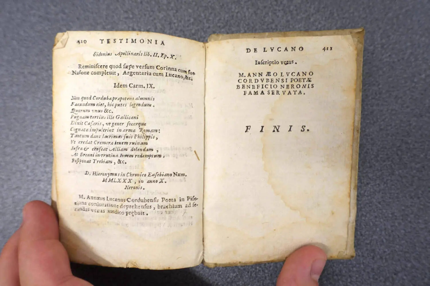 Unsere Ausgabe ist ein späterer Nachdruck von 1679, einer von vielen, wie man sagen muss, denn diese Edition war sehr beliebt. Damals war Grotius schon seit einer Generation tot. Doch Lukan war en vogue. Eigentlich war Lukan immer beliebt gewesen. In der christlichen Spätantike gefiel den Gläubigen die Abwesenheit der heidnischen Götter, im Mittelalter las man Lukan als wichtige historische Schrift zur römischen Geschichte. Und Grotius’ Zeitgenossen schätzten endlich Lukans sprachliche Kraft. Es gab Nachdichtungen, Neudichtungen und unzählige Anleihen und Anspielungen. Man inspirierte sich an den ausgefallenen Bildern des jungen Genies. Man erkannte, dass sich auch Erlebtes und Historisches in Versform verarbeiten ließ. In Shakespeares Römerdramen finden sich Spuren und Lukans Hexe Erichtho erhält einen Auftritt in Goethes Klassischer Walpurgisnacht. Während der Französischen Revolution trugen die Säbel der Gardisten ein Lukanzitat eingraviert (4,579: „Man beachtet nicht, dass es Schwerter gibt, damit niemand Sklave sei.“). Philologische Arbeiten wie die von Hugo Grotius dienten der intensiven Rezeption als Grundlage. Von diesen Texten ausgehend gab es schon zu Grotius’ Zeit Übersetzungen. Aber wer ernsthaft Lukan lesen wollte, brauchte einen verlässlichen Originaltext.