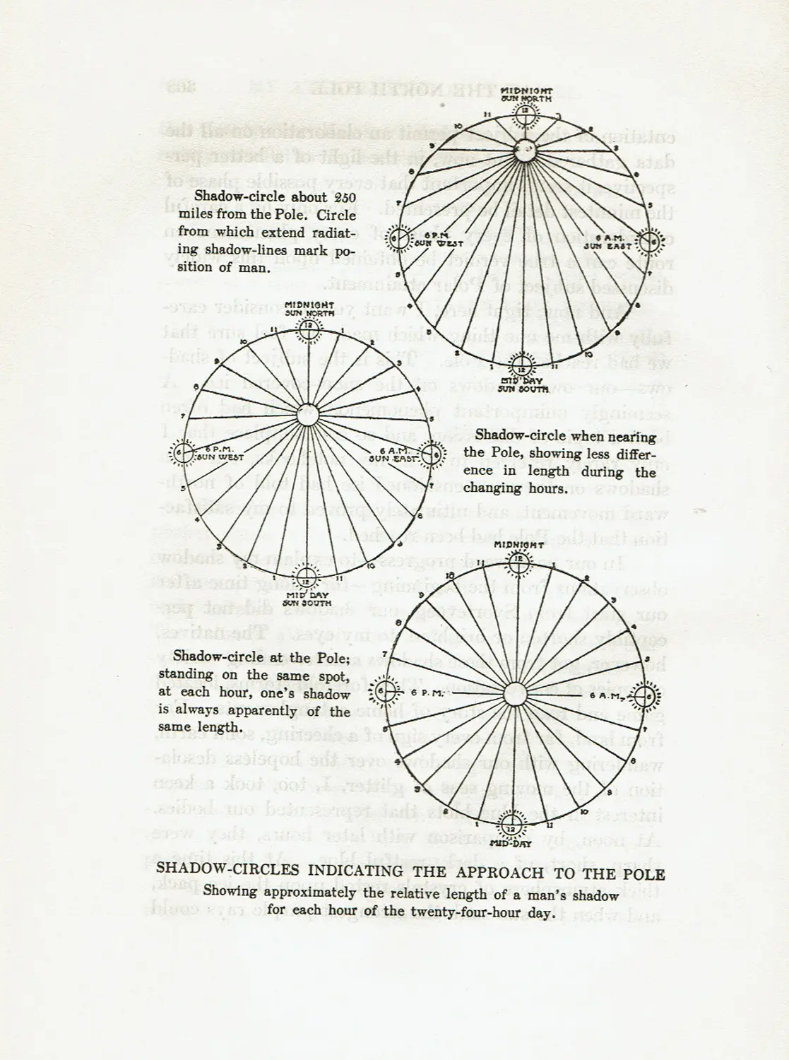 With this in mind, let’s have a look at Frederick Cook’s book on his North Pole expedition. We have a first edition of Cook’s My Attainment of the Pole published in 1911 in our library. At first glance the 600-page book resembles Peary’s book presented in the last article. We read about routes, daily distances and all kinds of things the explorers experienced on the way. The book is illustrated with numerous expedition photos. Cook also provided the most important measurement data for determining the position at the pole. And he included corresponding sketches to explain to laypersons how the position of the North Pole can be determined through the course of the sun and the position of shadows.