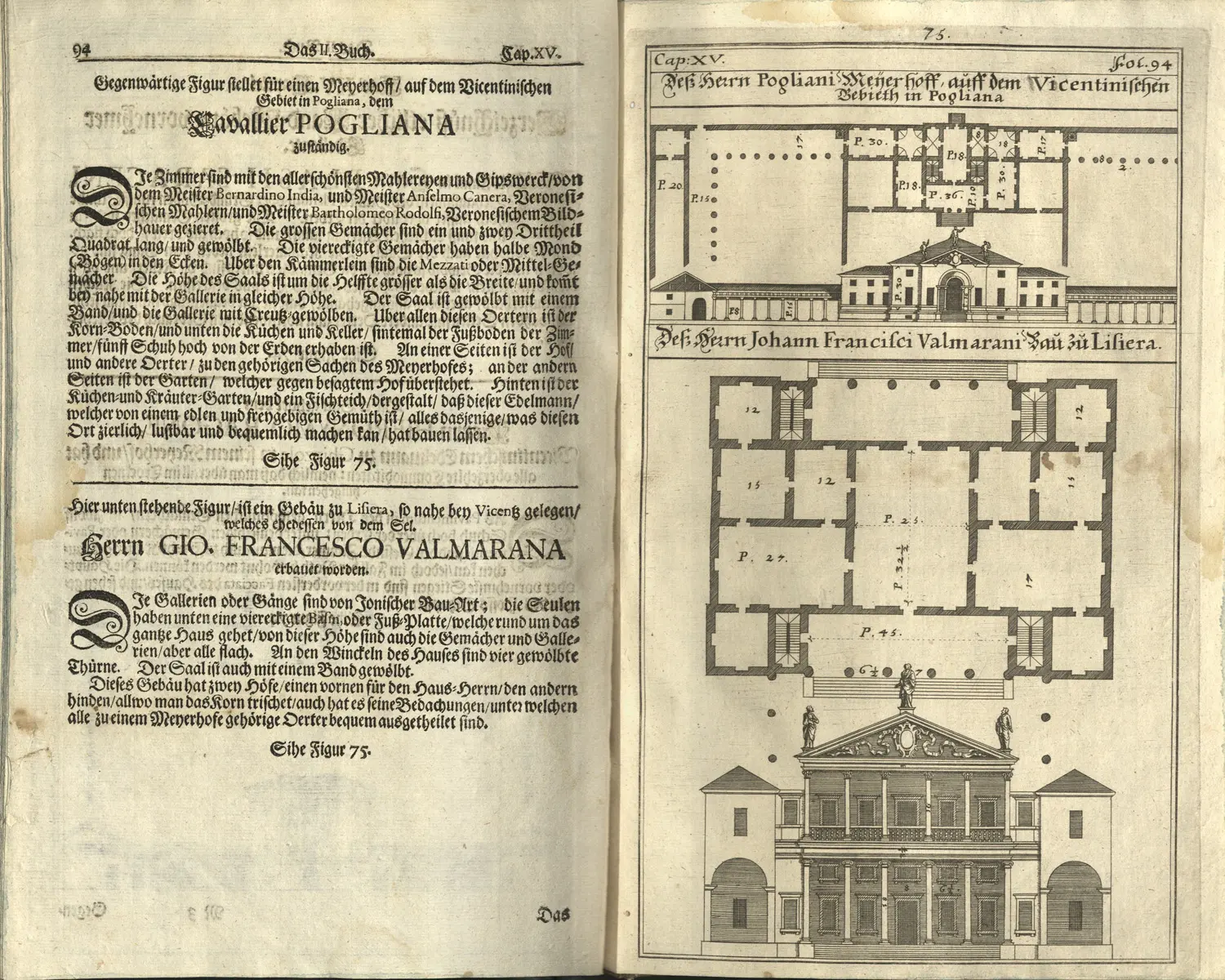Palladio dedicated his second book to various buildings he planned. He provided architects with an extensive book of samples that they could use to get inspiration for their own projects. What is exciting for us today is that many of these buildings have survived to this day, and that we can compare their appearance with the plans Palladio once submitted to his clients.