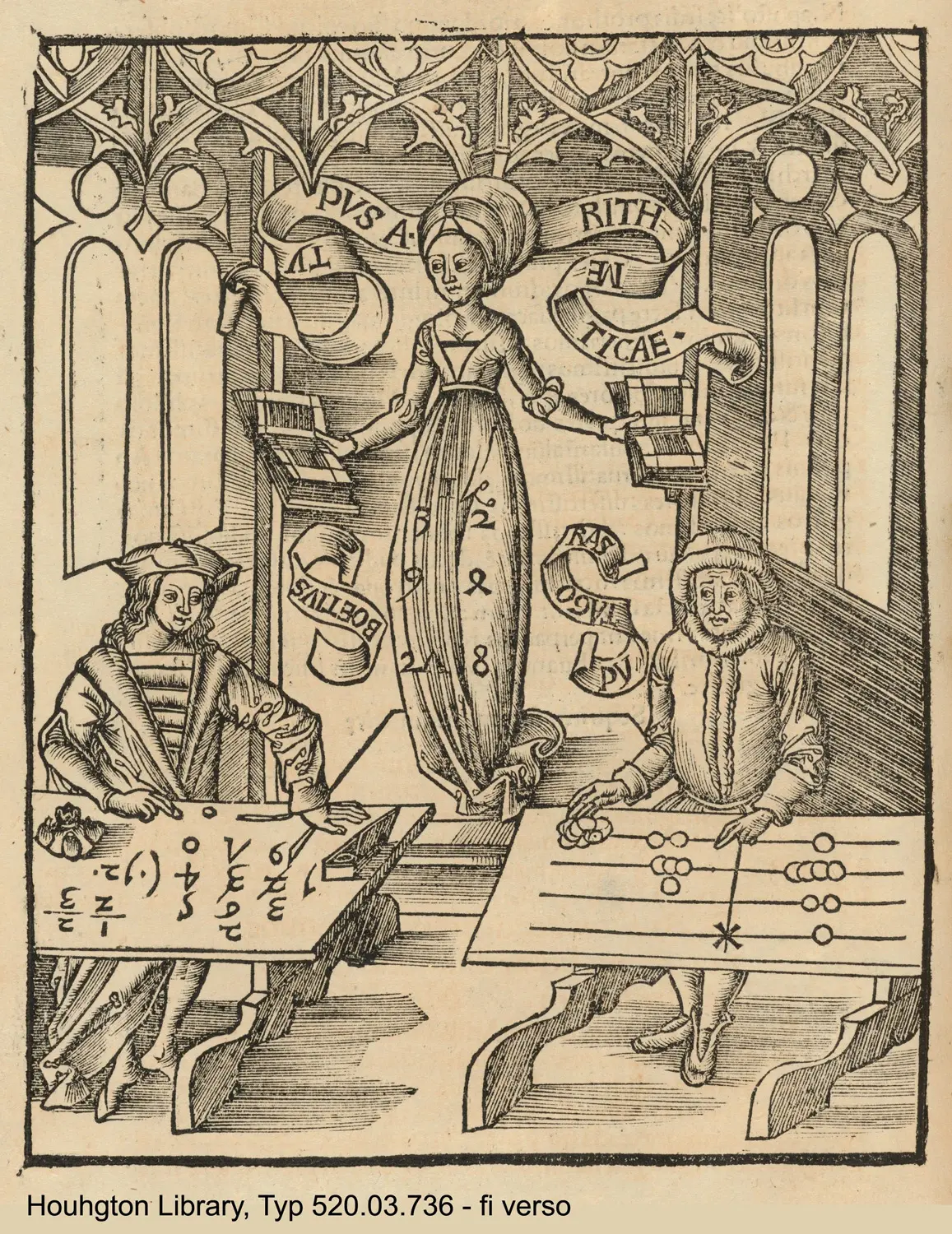 Für das Rechnen machte es keinen wesentlichen Unterschied, denn schriftliches Rechnen funktionierte nicht mit den lateinischen Zahlen, die in Zentraleuropa die Kaufmannsbücher bis ins 15. Jahrhundert beherrschten. Stattdessen benutzte man den Abakus oder Rechentisch, um Additionen und Subtraktionen „auf der Linie“ auszuführen.