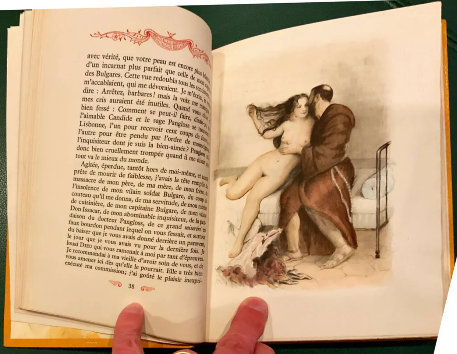 Die hier ausgestellte Ausgabe erschien rund 200 Jahre nach der Publikation der Erstausgabe. Verantwortlich für sie zeichnet der Pariser Verlag Arc-en-Ciel (= Regenbogen). Es handelt sich um eine kostspielige Sammlerausgabe, die Paul Émile Bécat, damals ein für seine erotischen Zeichnungen sehr bekannter Künstler, illustrierte.