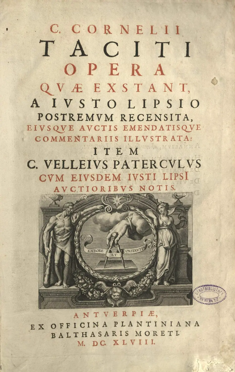 Die 1648 gedruckte Ausgabe des Tacitus enthält seine wichtigsten Werke.