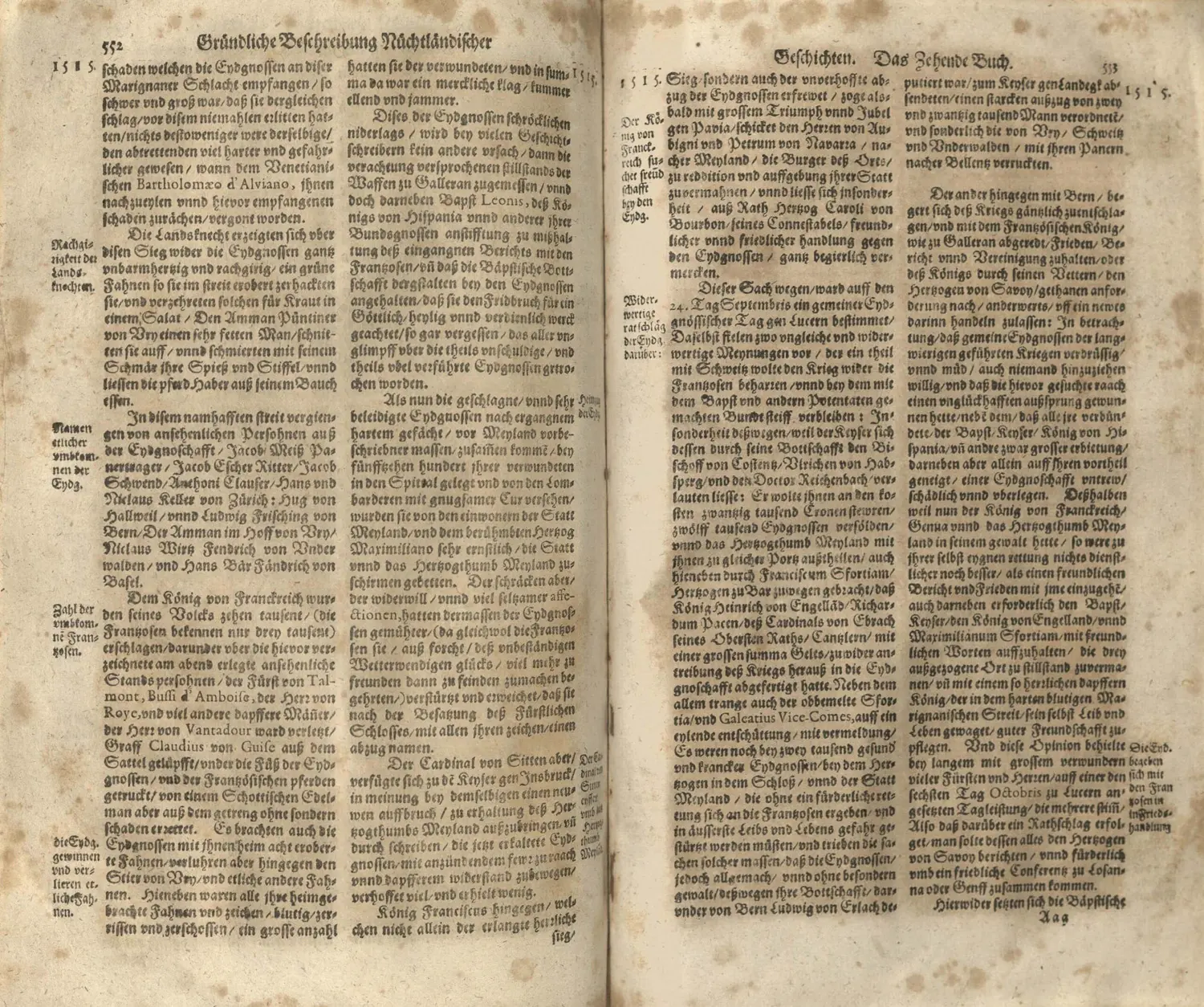 Begleiten Sie uns also auf unserer Reise durch die Jahrhunderte: Das MoneyMuseum präsentiert Ihnen einige der prachtvollsten Chroniken, die Schweizer Historiker verfasst und Schweizer Drucker gedruckt haben.